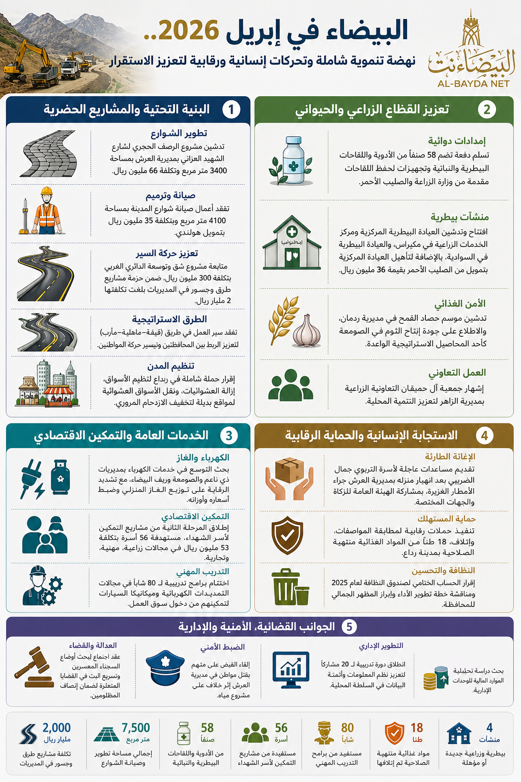 البيضاء في إبريل 2026.. نهضة تنموية شاملة وتحركات إنسانية ورقابية لتعزيز الاستقرار