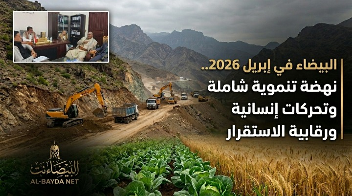شهدت محافظة البيضاء خلال شهر إبريل 2026 حراكاً تنموياً وإدارياً مكثفاً، جسد تلاحم جهود السلطة المحلية بقيادة المحافظ عبدالله إدريس مع مختلف القطاعات الخدمية والأمنية والقضائية، وتنوعت مسارات العمل الميداني لتشمل إطلاق حزمة من مشاريع البنية التحتية الاستراتيجية، وتعزيز القدرات الإنتاجية للقطاع الزراعي، إلى جانب الاستجابة الفورية للحالات الإنسانية الطارئة الناجمة عن الأمطار؛ كما ركزت التحركات الرسمية على تطوير الأداء الإداري عبر أتمتة البيانات وتنمية الموارد المحلية، بالتوازي مع حملات رقابية صارمة لحماية المستهلك وتنظيم الأسواق، بما يسهم في تحسين مستوى العيش وتخفيف معاناة المواطنين في مختلف المديريات.