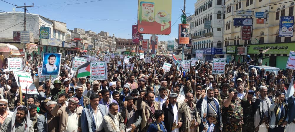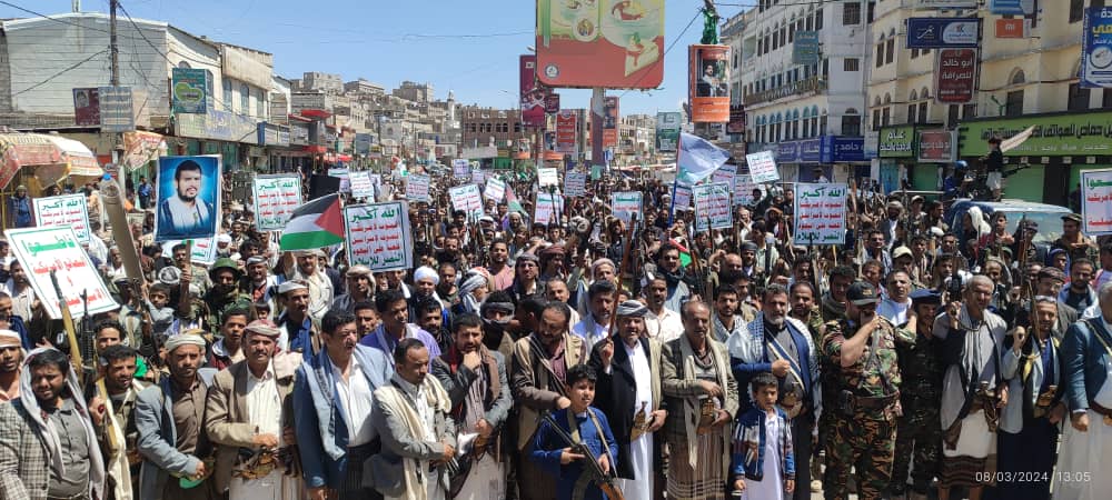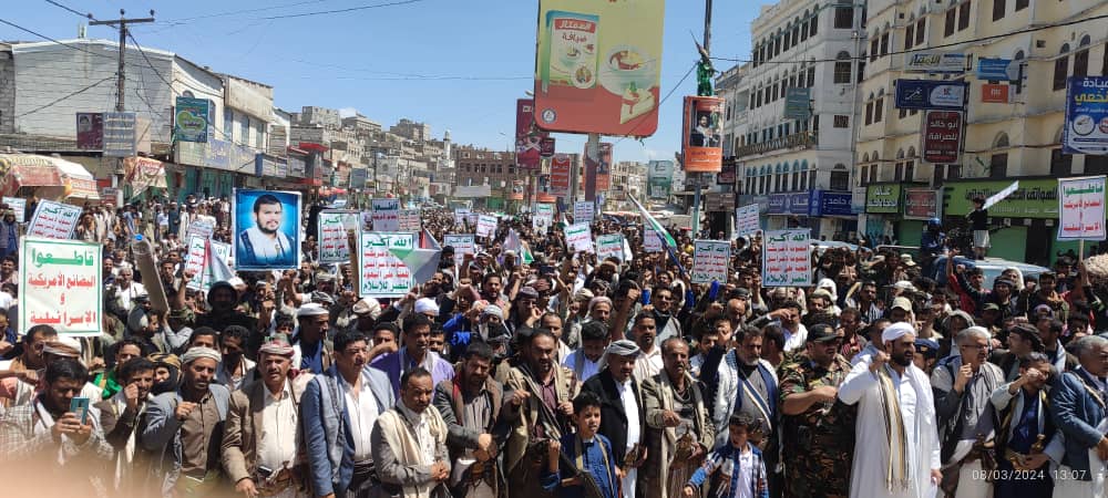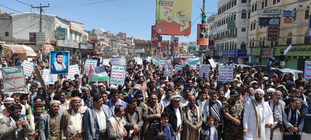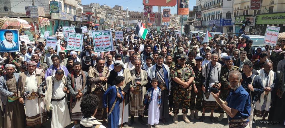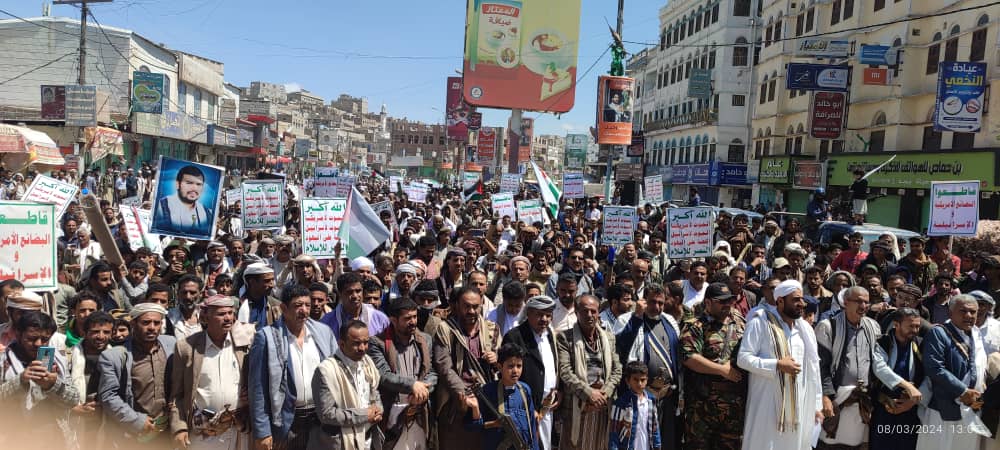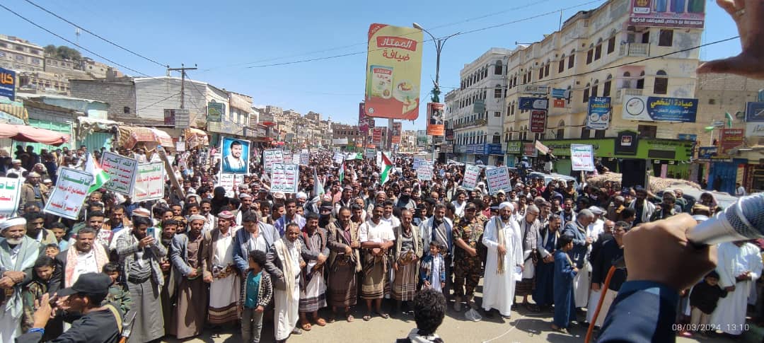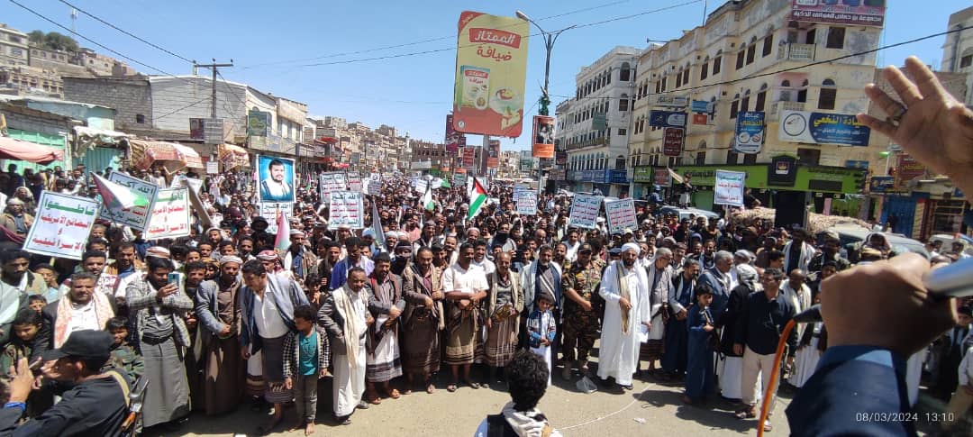 صور | حشود جماهيرية كبيرة بمدينة #البيضاء في مسيرة “انتصاراً لغزة.. ضرباتنا متصاعدة” 27-08-1445 | 08-03-2024