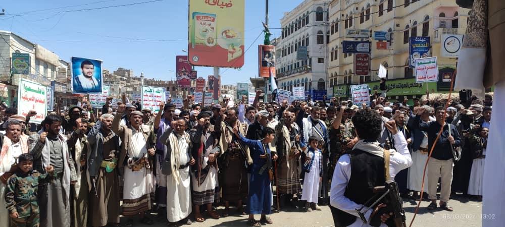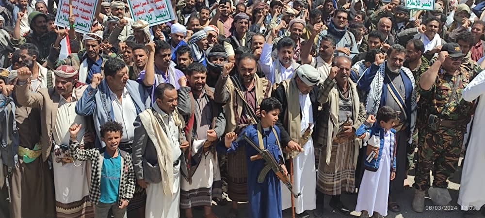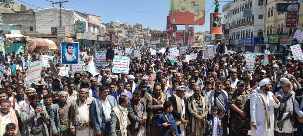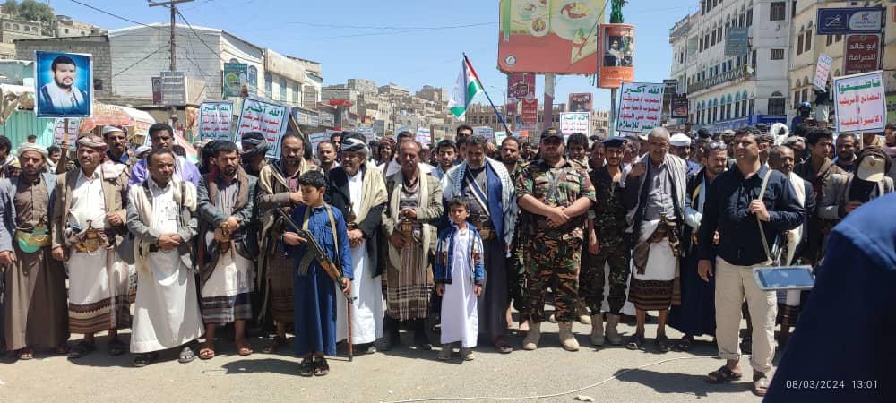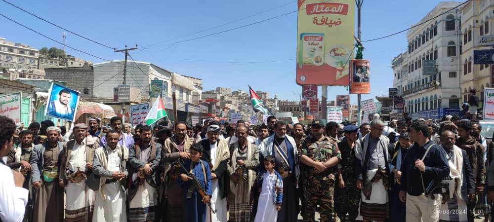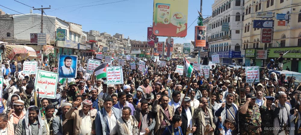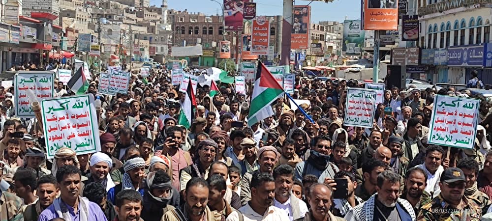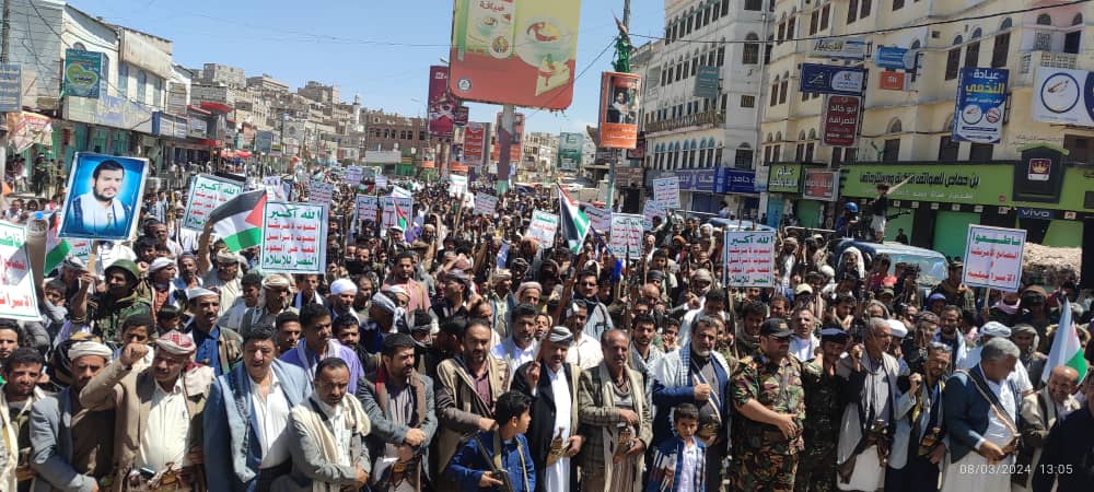 صور | حشود جماهيرية كبيرة بمدينة #البيضاء في مسيرة “انتصاراً لغزة.. ضرباتنا متصاعدة” 27-08-1445 | 08-03-2024