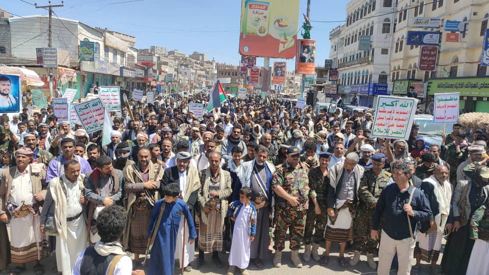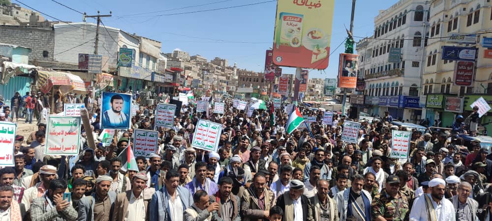 صور | حشود جماهيرية كبيرة بمدينة #البيضاء في مسيرة “انتصاراً لغزة.. ضرباتنا متصاعدة