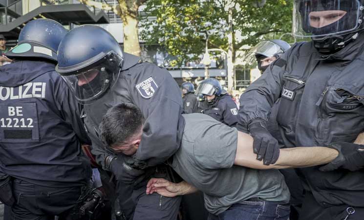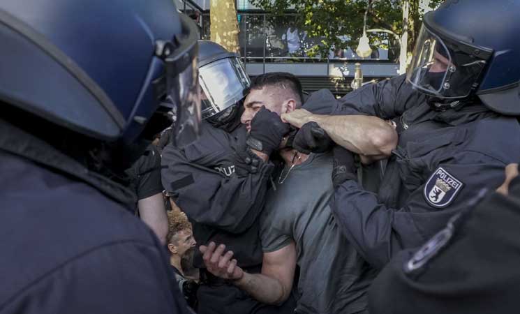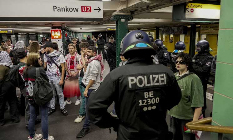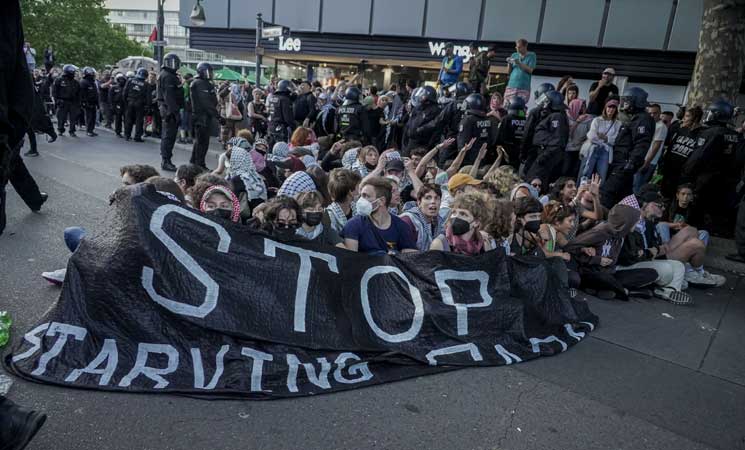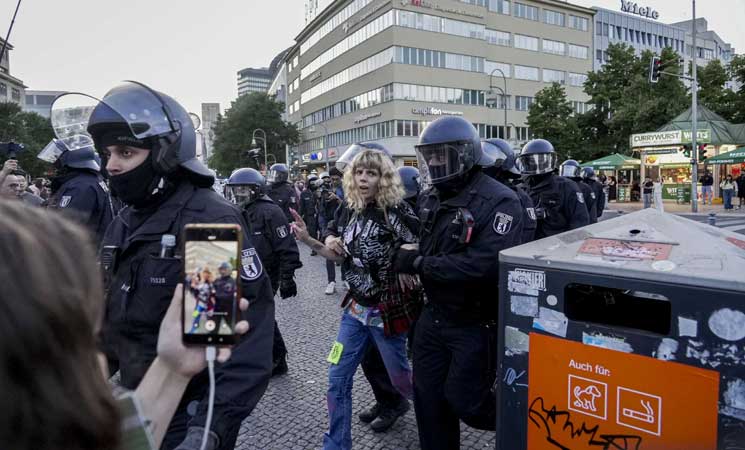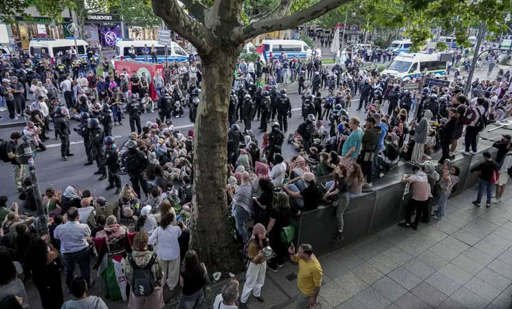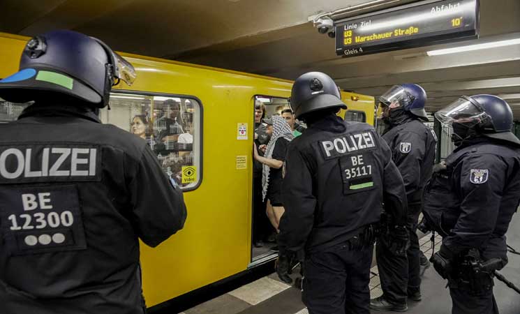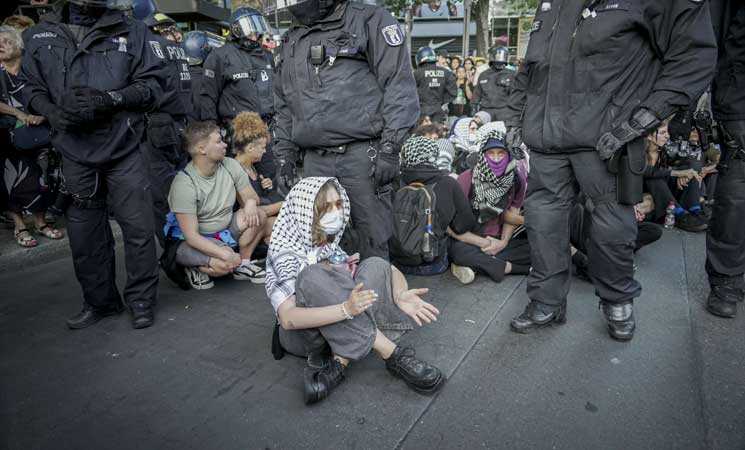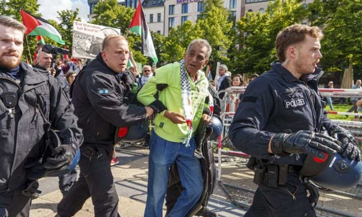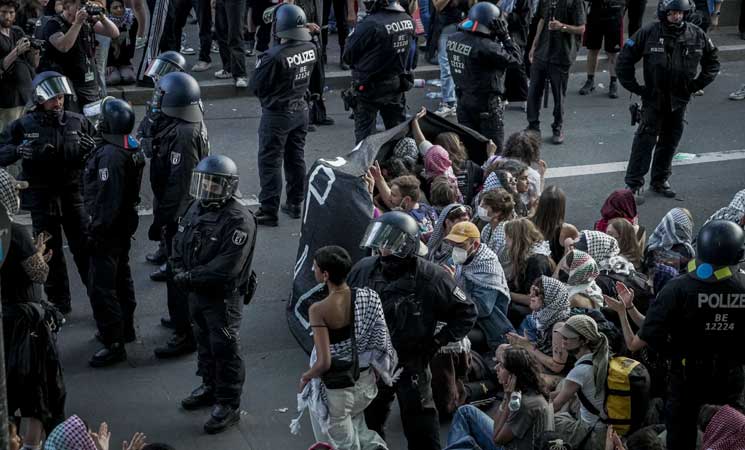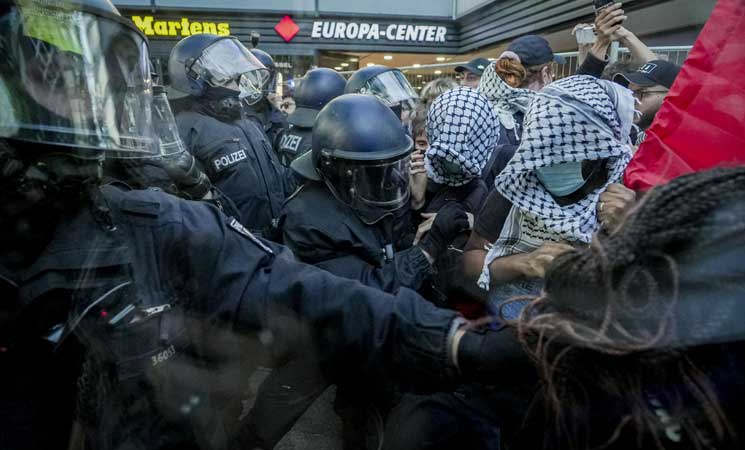 استخدمت الشرطة الألمانية في العاصمة برلين العنف ضد وقفة داعمة لفلسطين، واعتقلت عددًا كبيرًا من المشاركين.