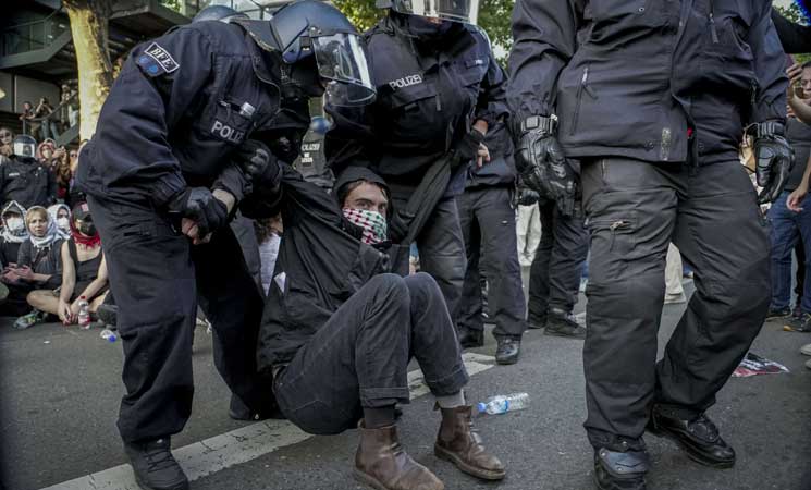 بالصور: الشرطة الألمانية تعتدي على متضامنين مع فلسطين وتعتقلهم