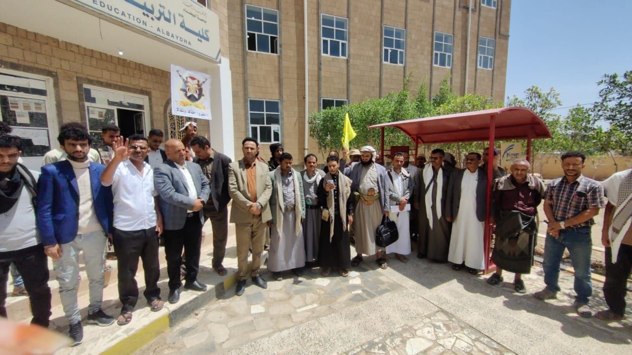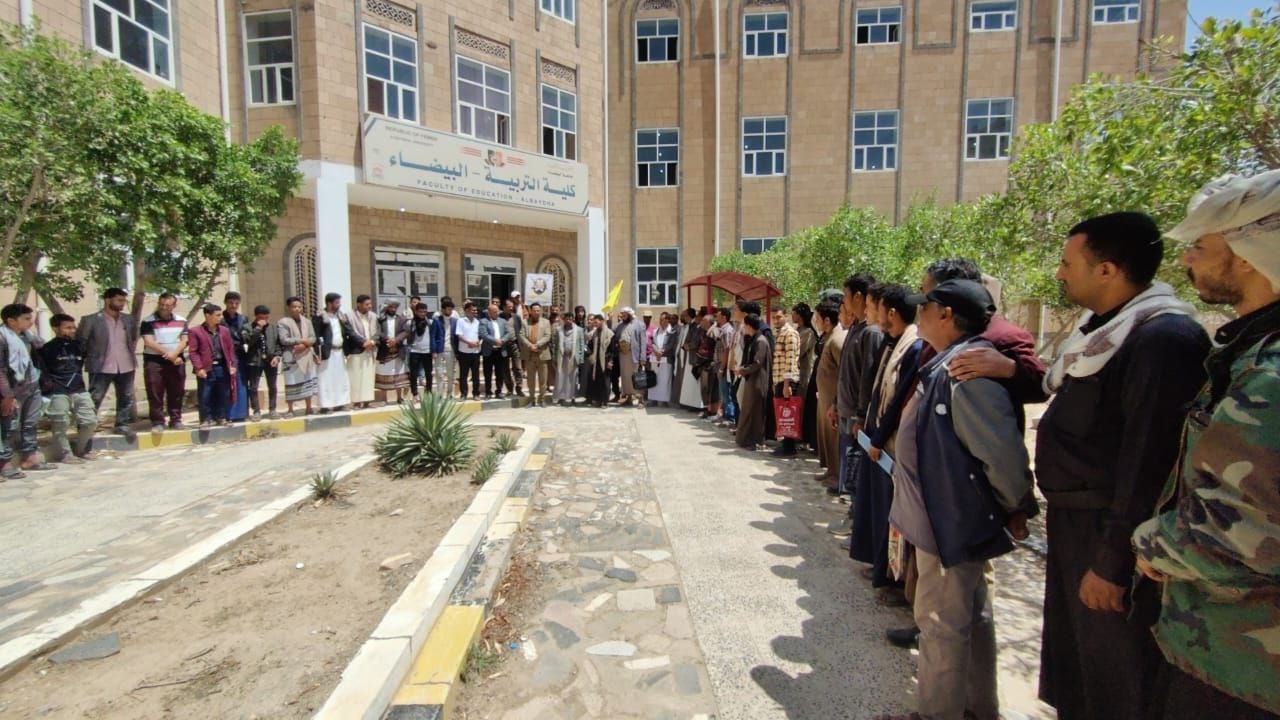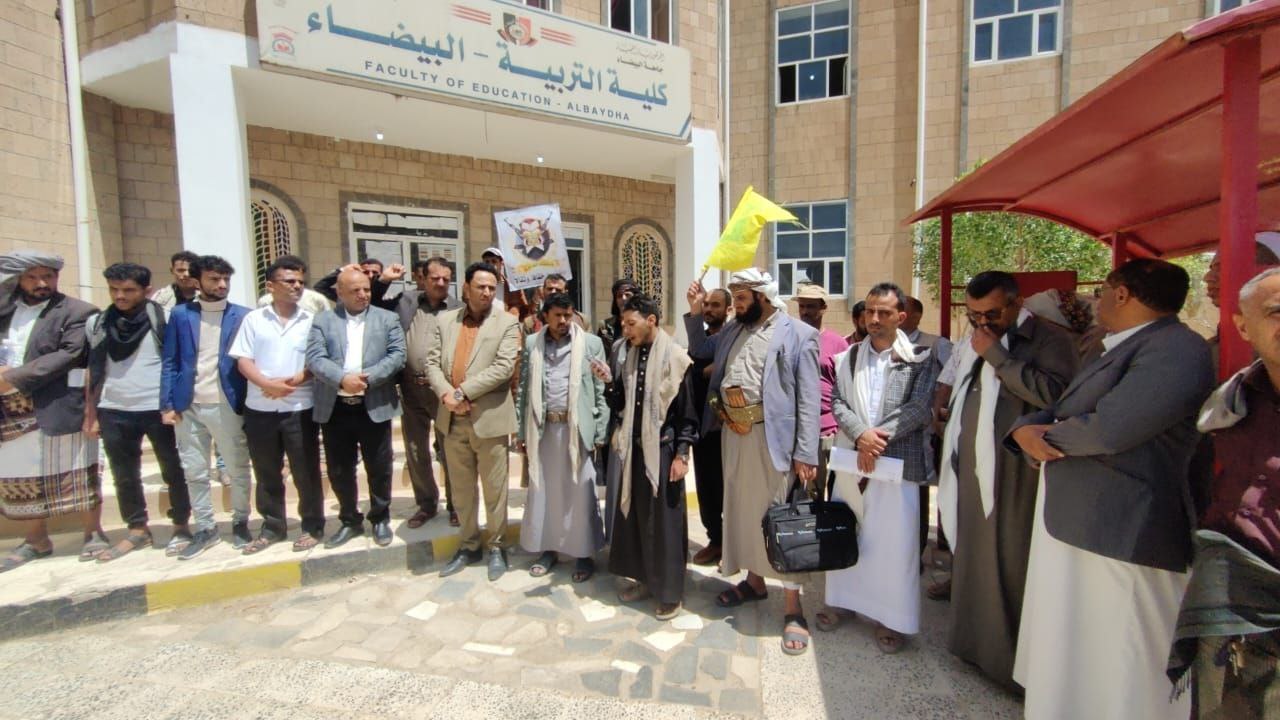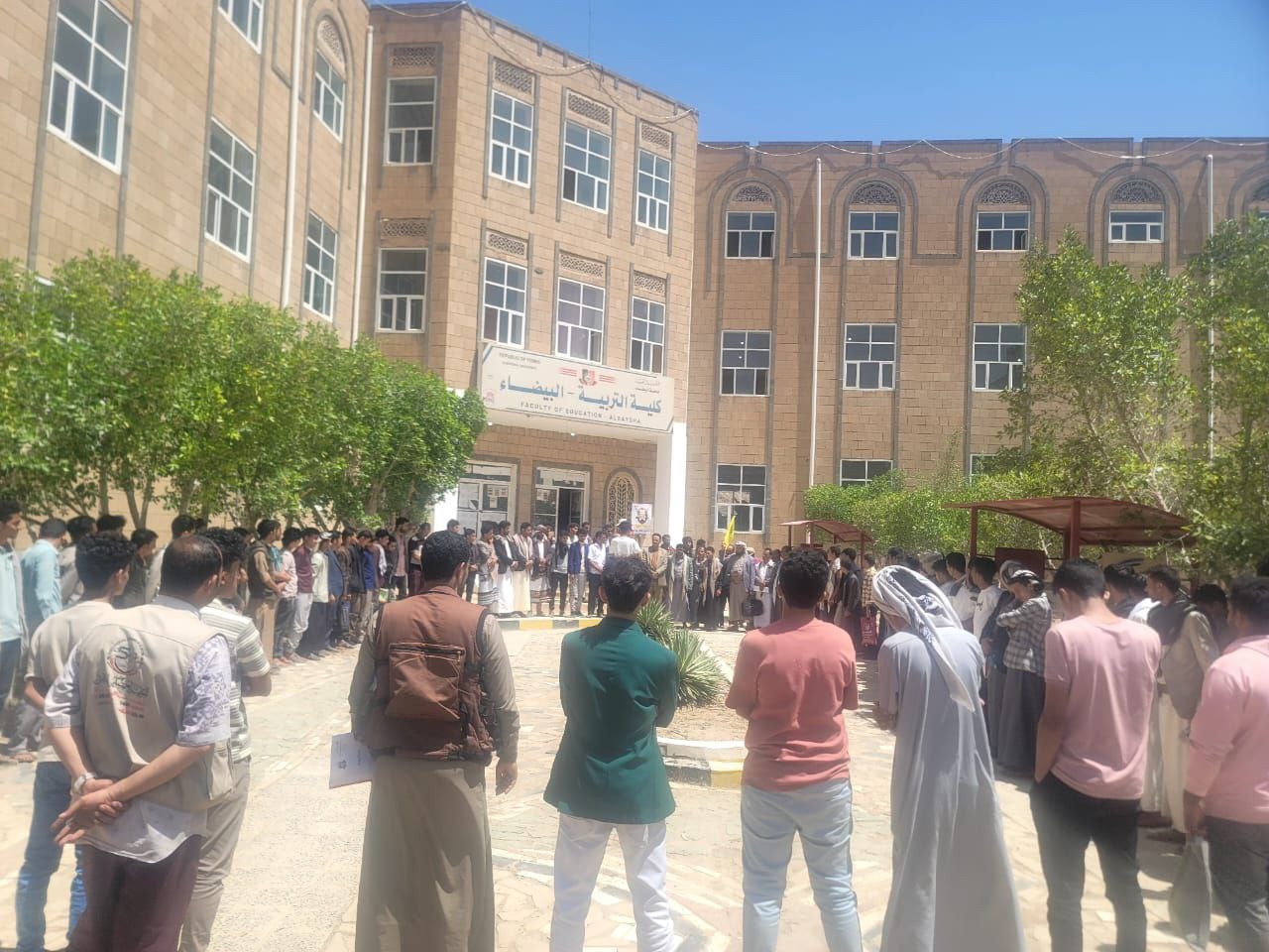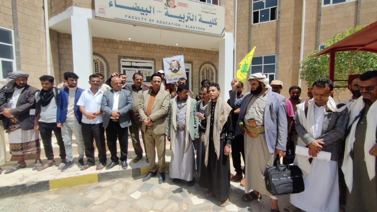 نظمت جامعة البيضاء، اليوم، وقفة تضامنية مع المرابطين في غزة، تأكيدًا على الموقف الثابت للشعب اليمني في مساندة القضية الفلسطينية ودعم صمود أبناء القطاع في مواجهة العدوان الإسرائيلي.
