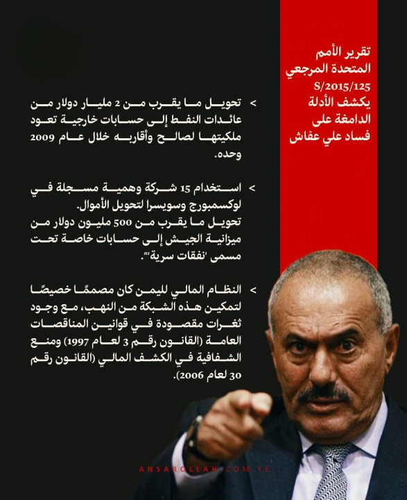 من وثائق أممية وتقارير دولية.. تتبع جانب من أموال عفاش المنهوبة من خزائن اليمن