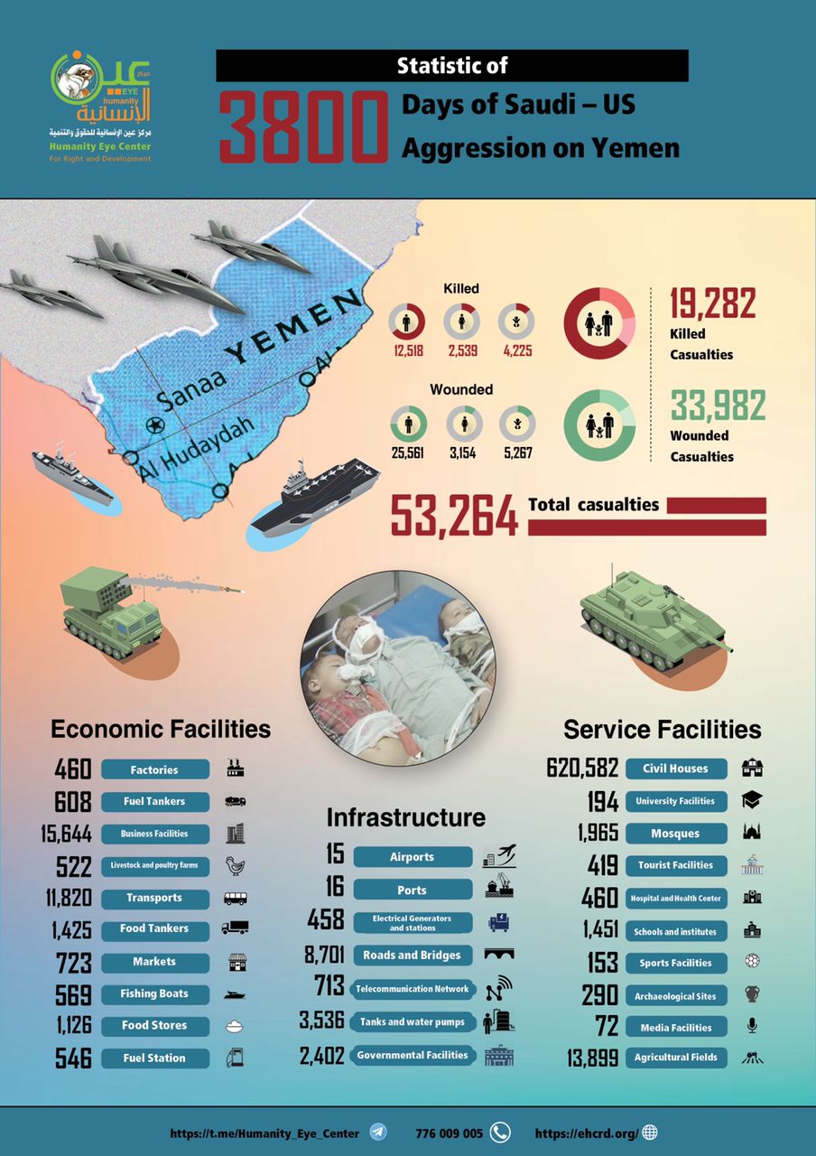 بالصور | مركز “عين الإنسانية”: أكثر من 53 ألف شهيد و3800 يوم من العدوان على اليمن البيضاء نت | صور مركز عين الإنسانية: 53 ألفا و264 شهيداً خلال 3800 يوم من العدوان على اليمن #مركز عين الإنسانية للحقوق والتنمية Share FacebookTwitterGoogle+ReddItWhatsAppPinterestEmail