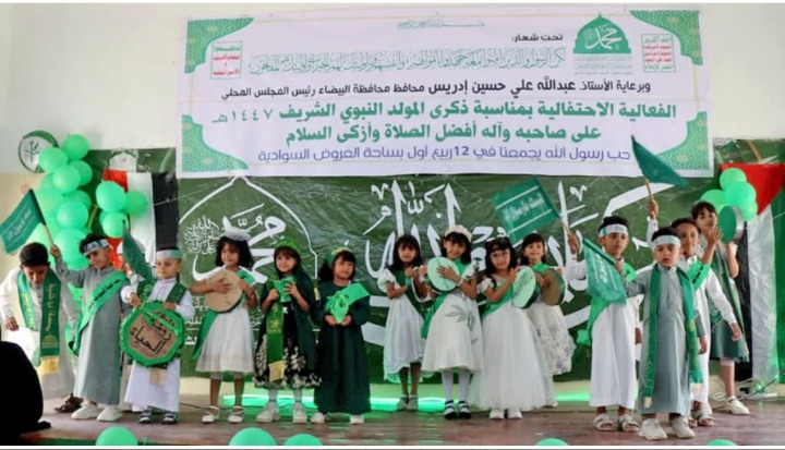 وأشار محافظ البيضاء عبدالله إدريس إلى أن الاحتفال بالمناسبة يعكس وعي أبناء المحافظة وتمسكهم بالإسلام المحمدي، ويؤكد دعم اليمن الثابت للشعب الفلسطيني.