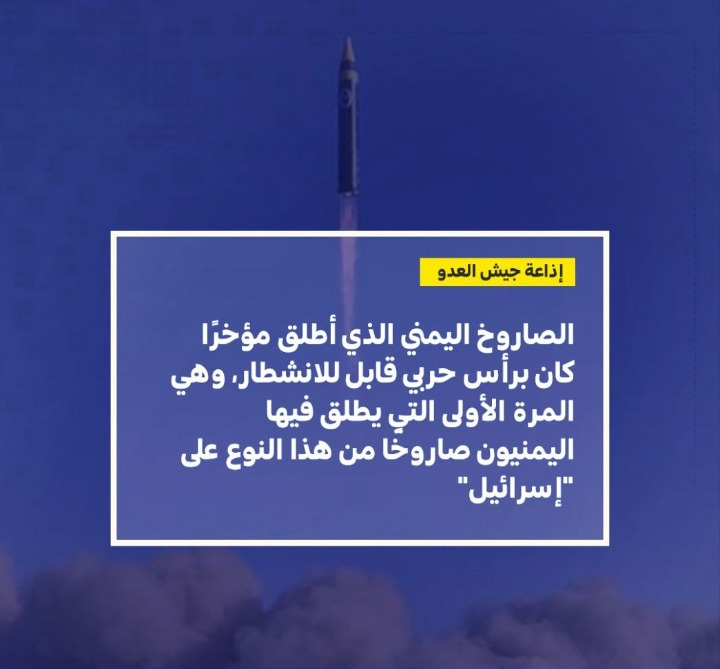 أحد أبرز مظاهر هذا التحدي هو القدرة على اختراق الدفاعات الإسرائيلية، فبحسب إذاعة جيش العدو، فإن الصاروخ اليمني الذي أطلق مؤخرًا كان “برأس حربي قابل للانشطار”، وهي المرة الأولى التي يطلق فيها اليمنيون صاروخًا من هذا النوع على “إسرائيل”. هذا التطور التكنولوجي في القدرات الصاروخية اليمنية، الذي أشار إليه المحلل العسكري الإسرائيلي هليل روزن، يظهر كيف أن هذه القدرة لم يستطع العدو تدميرها، ولا وقف تطوير وإنتاج صواريخ جديدة، ما يشير إلى تقدم مطّرد في الصناعات الصاروخية اليمنية وتعاظم التهديد.