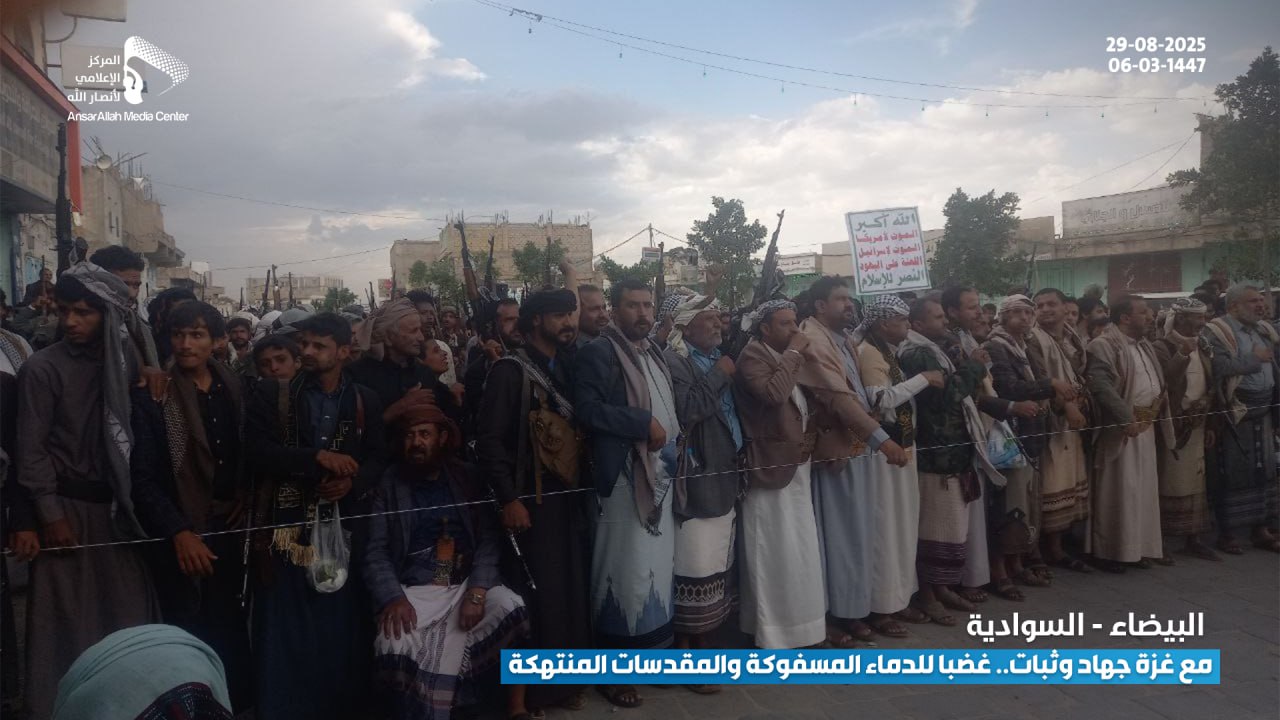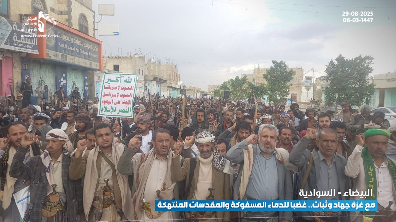 صور من المسيرة الجماهيرية بمديرية السوادية – البيضاء، التي خرجت تحت شعار: “مع غزة جهاد وثبات.. غضباً للدماء المسفوكة والمقدسات المنتهكة”، البيضاء نت | صور #لستم_وحدكم#يمن_الواثقين_بالله Share FacebookTwitterGoogle+ReddItWhatsAppPinterestEmail